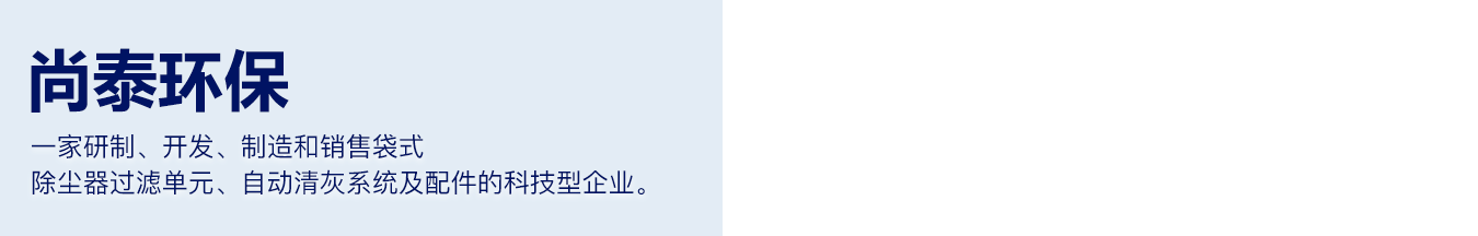 上海尚泰環(huán)保配件有限公司創(chuàng)立于2006年5月,是一家研制、開發(fā)、制造和銷售袋式除塵器過濾單元、自動清灰系統(tǒng)及配件的科技型企業(yè)。